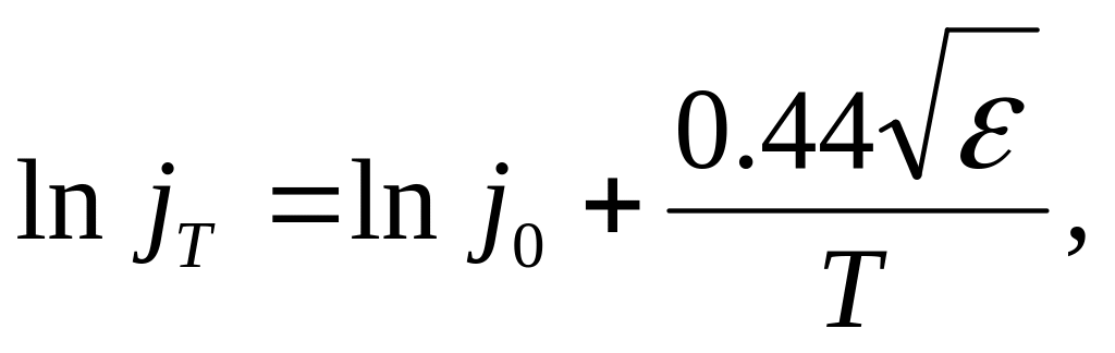 для цилиндрической системы электродов. Здесь rk и ra радиусы катода и анода соответственно. Отрезок jo, отсекаемый продолжением прямолинейного участка графика Шоттки от оси ординат, и есть значение плотности тока насыщения при ε = 0.