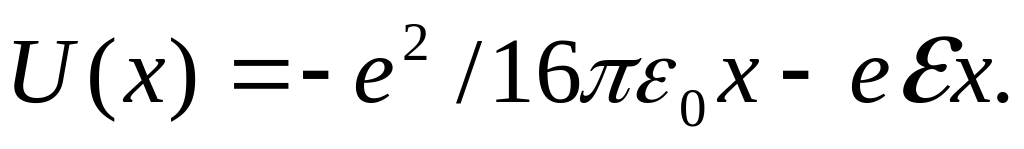 При отсчёте потенциальной энергии электрона от дна зоны проводимости потенциальная энергия электрона в вакууме вблизи границы раздела металл – вакуум имеет вид