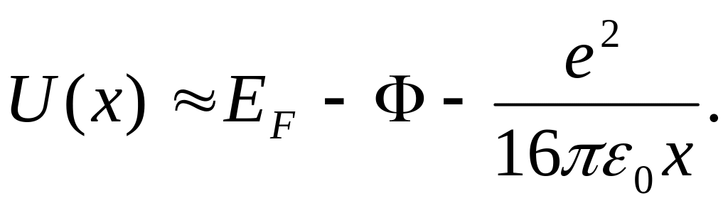 Соотношения (3) и .4) справедливы при x > 0,3 нм. Точная форма барьера при x < 0,3 нм зависит от конкретной поверхности металла. В традиционных теориях электронной эмиссии в приближении свободных электронов принимается, что (3) и (4) справедливы вплоть до точки xc, когда U(xc) = 0.