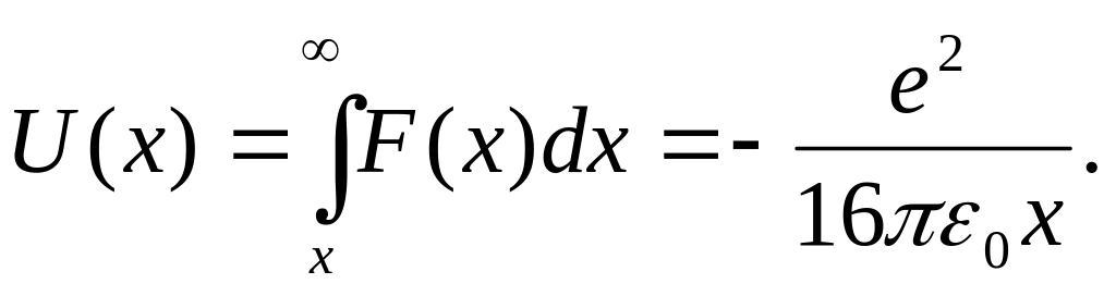 Потенциальная энергия электрона равна работе по перемещению его из данной точки на бесконечность и определяется как интеграл от силы