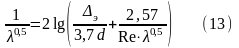 Для определения коэффициента гидравлического трения имеется ряд обобщенных формул, действительных для всех областей турбулентного режима течения. Широко используется формула Кольбрука: