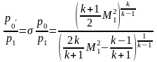 Коэффициент давления полного торможения газа, прошедшего скачок уплотнения, может быть записан в виде: