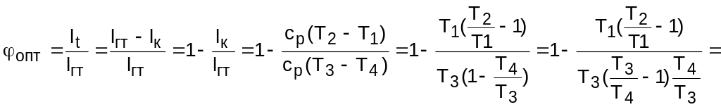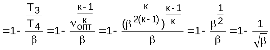Из выражения (8.12) следует, что большему значению Т3 (большему ) будет соответствовать большее значение опт. Подставив величину опт в выражение (8.7), получим значение оптимального термического КПД ГТУ