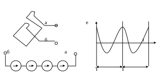Довжина провідника l і кутова швидкість ротора v не змінюється, а магнітна індукція В змінюється за значенням і напрямком.
