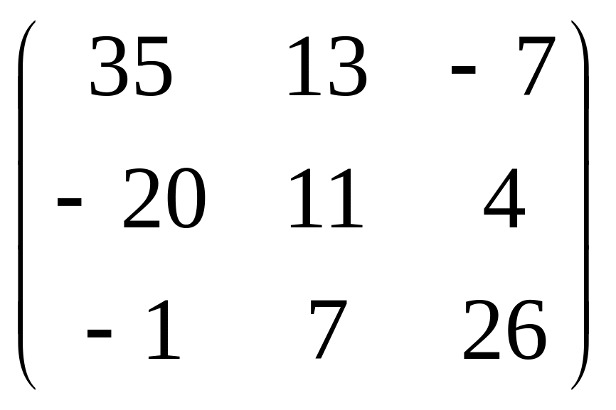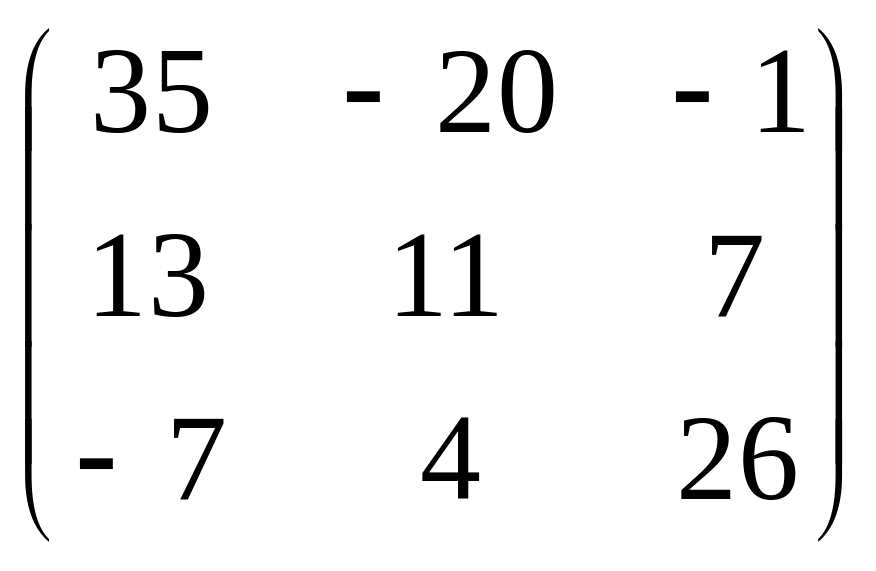 При умножении матриц каждая строка матрицы умножается на столбец матрицы и в результате получается соответствующий элемент матрицы . Таким образом, последняя матричная запись содержит все три уравнения данной системы линейных алгебраических уравнений. Коротко ее можно записать так: