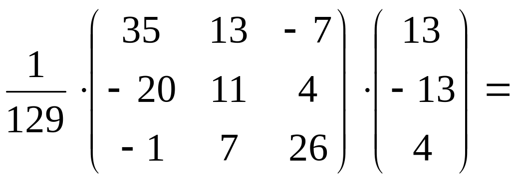 Решение системы линейных алгебраических уравнений находим по формуле (3.2) умножением матрицы на матрицу свободных членов :