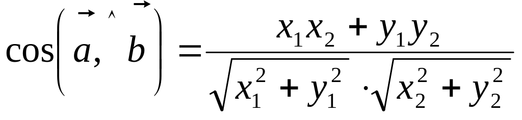 По какой формуле вычисляется угол между двумя векторами в координатах?