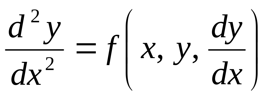 Уравнение, содержащее производные (или дифференциалы) не выше второго порядка, называется дифференциальным уравнением второго порядка. В общем виде уравнение второго порядка записывается следующим образом: