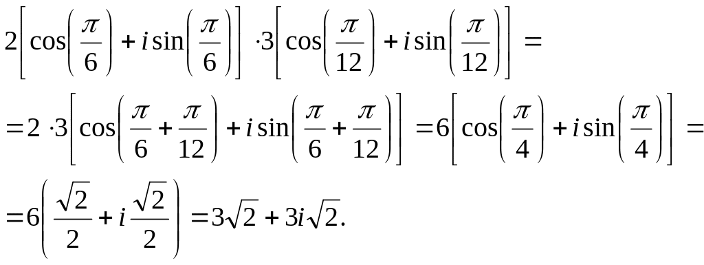 Решение: 1) По формуле умножения комплексных чисел заданных в тригонометрической форме получим