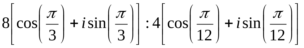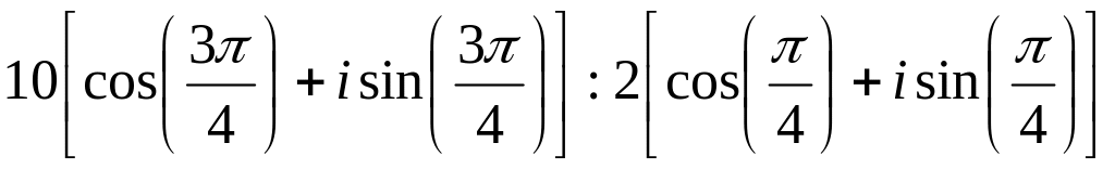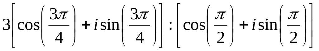 2) По формуле деления комплексных чисел заданных в тригонометрической форме получим