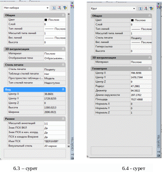Свойства (properties) диалогтық терезесі AutoCAD объектілерінің қасиеттерін көру мен өзгертудің негізгі құралы болып табылады. Бұл терезенің көмегімен редакциялауға жататын кез келген қасиеттерді өзгертуге болады, оның ішінде:
