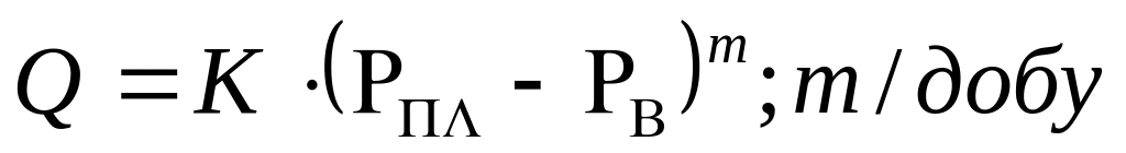 К-коефіцієнт продуктивності свердловини, т/добу атм;