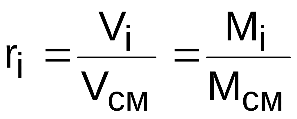 Объeмной долей ri данного газа называется отношение объема, который занимал бы данный газ при температуре и давлении смеси, к общему объему смеси: