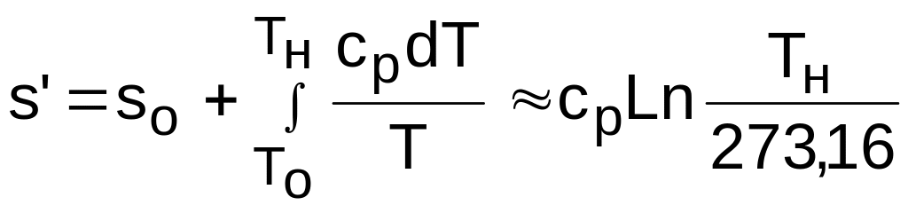 Зная значение энтропии sо при t=0 oС и заданном давлении, энтропию жидкости на линии насыщения при Tн можно определить как