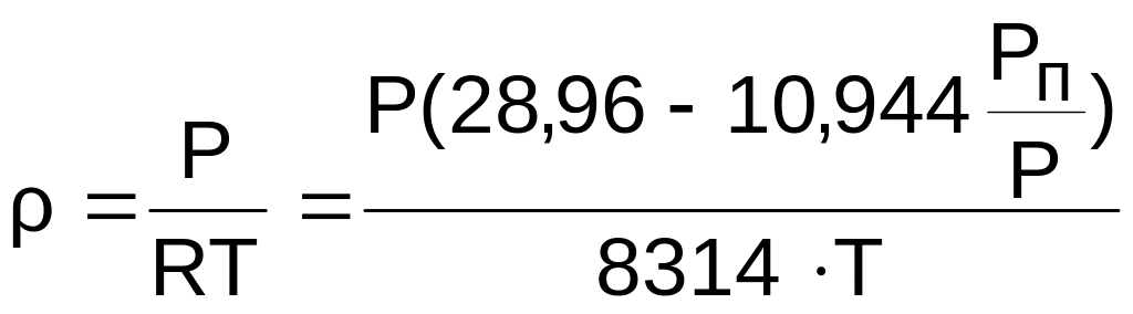 Плотность влажного воздуха определяется выражением