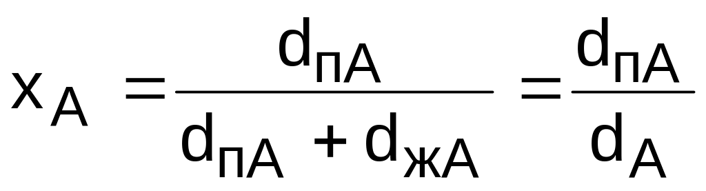 В случае охлаждения воздуха ниже температуры точки росы (tА<t1росы) можно определить по H,d- диаграмме количество влаги, выпавшей в виде капелек жидкости из воздуха dжА. Для этого определяется количество пара в перенасыщенном воздухе dнА по tА и =100 % и по разности влагосодержаний d1-dнА=dжА находится влагосодержание жидкой фазы воды в воздухе. В конце такого процесса степень сухости водяного пара со снижением температуры будет уменьшаться. Рассчитать ее можно по влагосодержаниям паровой и жидкой фаз воды в воздухе: