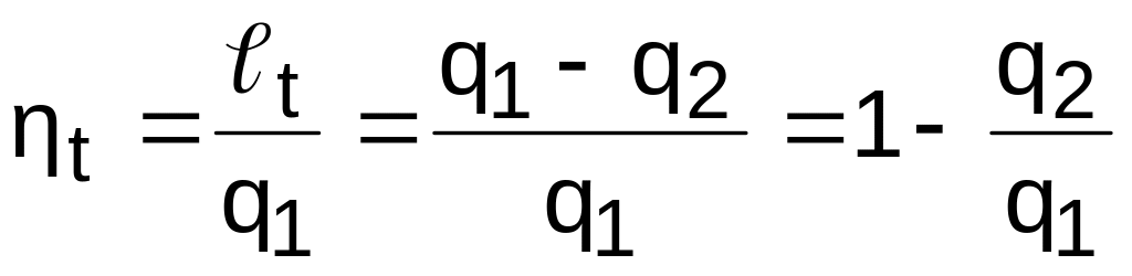 При равенстве подведенной и отведенной теплоты (q1=q2) работа цикла и его термический КПД равны нулю. В соответствии с этим утверждением, можно дать следующие формулировки второго закона термодинамики: