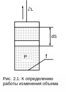 Применяя формулу элементарной работы в механике (2.3) к классической модели термодинамики – цилиндр с газом и поршнем (рис. 2.1), получим аналитическое выражение работы изменения объема: