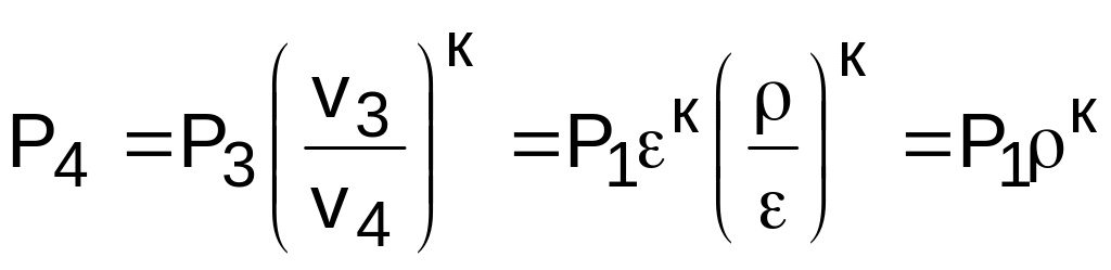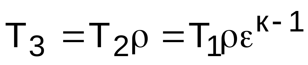Из уравнения (11.6) видно, что чем больше степень сжатия и меньше степень предварительного расширения, тем больше КПД. Снижение КПД за счет увеличения степени предварительного расширения объясняется тем, что изобара Р2 более пологая, чем изохора v1. При увеличении точка 3 стремиться к точке 4, что приводит к большему возрастанию q2 по отношению к q1.