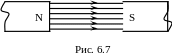 Если взять два постоянных магнита и установить их на некотором расстоянии друг от друга противоположными полюсами (северным и южным), то в любой точке магнитного поля между полюсами магнитная индукция будет одинаковой как по модулю, так и по направлению (рис. 6.7)