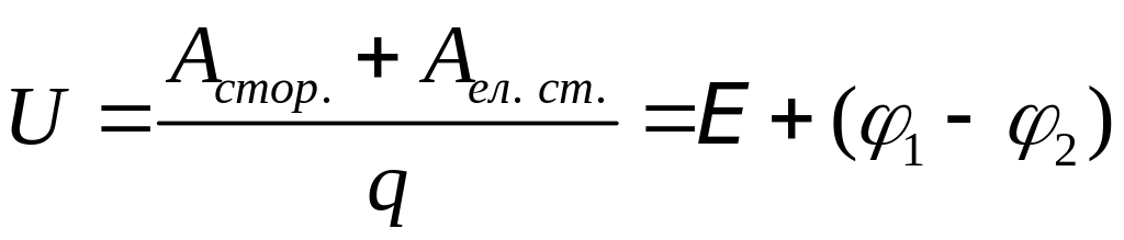 Електрична напруга U чисельно дорівнює повній роботі, яку виконують як сторонні, так і електростатичні сили при переміщенні одиничного позитивного заряду на деякій ділянці кола:
