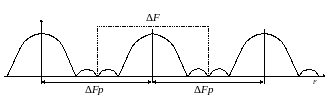 При частотном разделении каналов передача данных различных источников осуществляется на разных частотах. Каждому каналу выделяется своя полоса частот ΔF, как показано на рис. 3. При этом ΔFр – разнос между несущими частотами соседних частотных каналов. Полоса частот, занимаемая одним каналом ΔF = ΔFр.