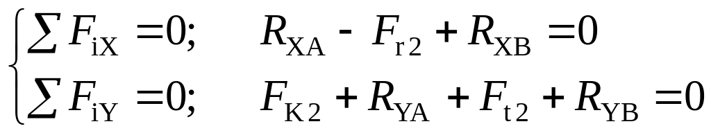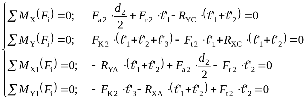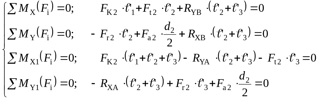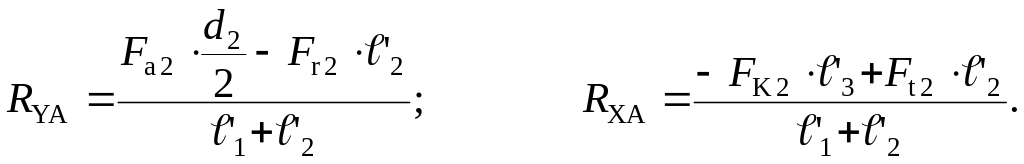 Рис. 7.8 Розрахункові схеми реакцій веденого вала