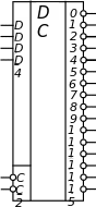 Примечание – Размеры условных графических обозначений (УГО) элементов цифровой техники зависят: по высоте – от числа линий выводов, числа строк информации (и интервалов между ними) внутри УГО и размера шрифта; по ширине – от наличия дополнительных полей, числа знаков (и пробелов между ними) в одной строке внутри УГО и размера шрифта. Приведенные соотношения геометрических размеров УГО элементов цифровой техники являются рекомендуемыми.