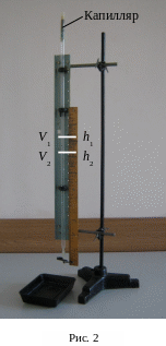 8. Установить зажим гибкую трубку внизу сосуда. Определить время вытекания данного объема жидкости V = V2 – V1. Этот объем равен объему воздуха, прошедшего через капилляр.