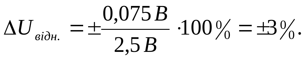 Коли зрівнюють точність показань декількох приладів, то визначають відносну похибку приладу, яку виражають у відсотках: