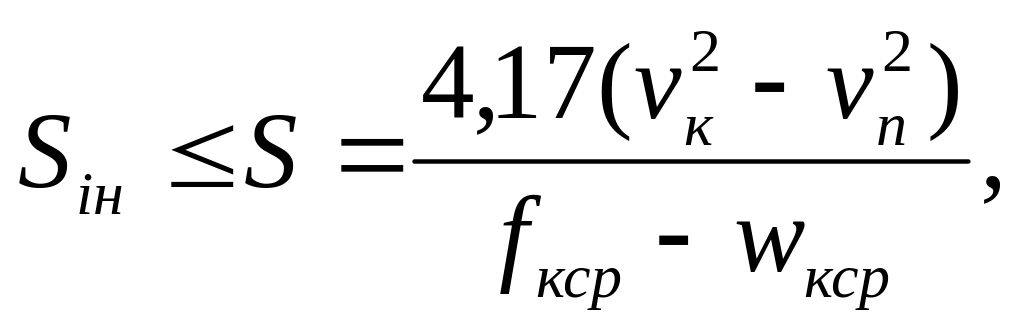 (fкср –wкср) – середня питома рівнодійна сила в межах інтервалу зміни швидкості від vп до vк, Н/кН.