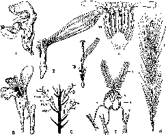 Стебель, лежащий горизонтально на земле и поднимающийся -которой своей частью, называется приподнимающимся, или восходящим. Слабые стебли, стелющиеся по земле, называются усами, или плетьми (рис. 1, фиг. 3), или ползучими стеблями.