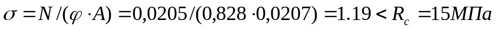 G =Nd/Ainf+Md/Wd =294,83/345+2.71/1725 =0.86 кН/cм² < Rc×γc /γn=15×0.95/0.95=15 кН/cм²