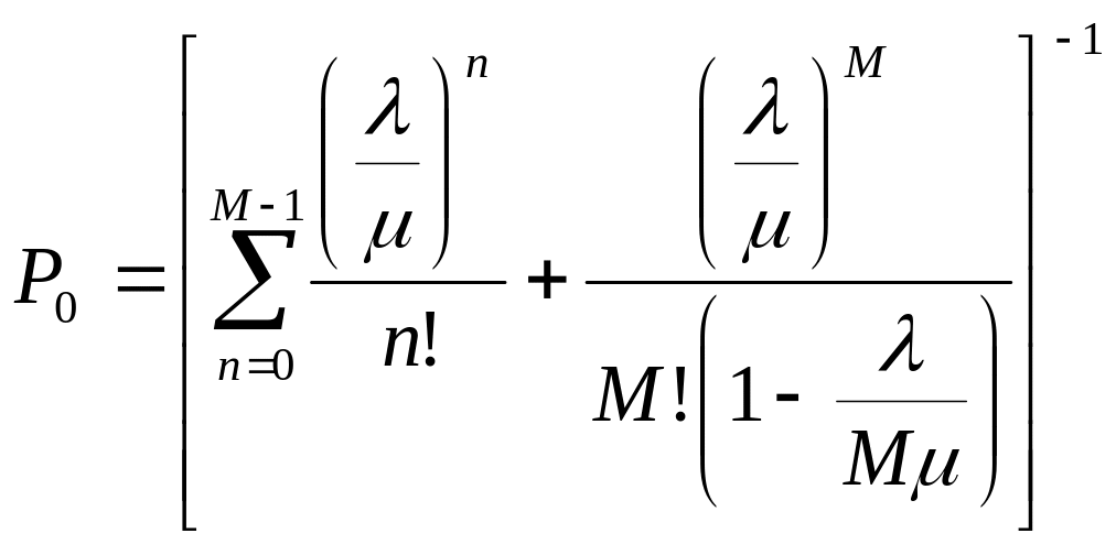 М – кількість каналів обслуговування; Ро –ймовірність знаходження в системе 0 клієнтів |