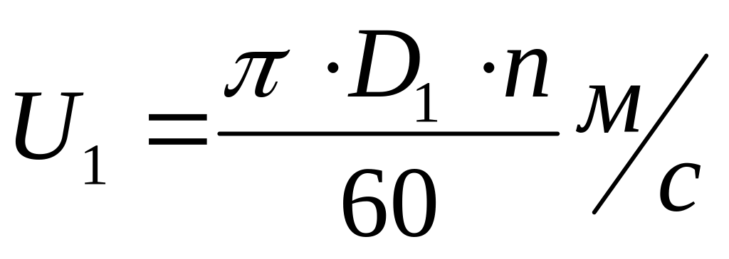 U1,U2 – окружные скорости соответственно на входе и выходе колеса направленные по касательным к окружностям Д1 и Д2. Величина окружных скоростей определяется по формулам:
