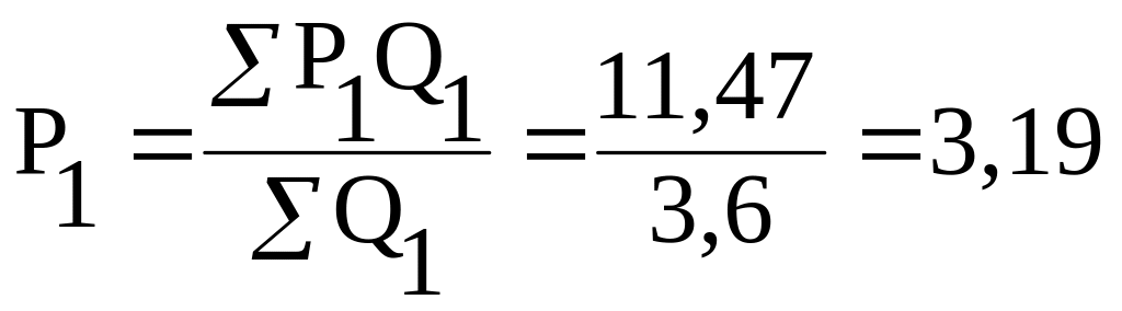 Середня ціна за півріччя визначиться за формулою 2.4 як середня гармонічно зважена: