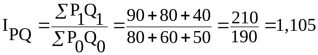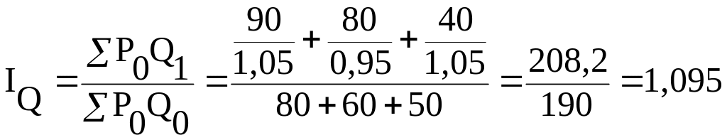 б) індекс зміни фізичного обсягу визначаємо за формулою Ласпейреса (2.6)