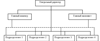 Функциональная структура. Формирование подразделений, каждое из которых специализируется на выполнении определенной функции. Вертикальные межуровневые связи в такой организации многообразны. Наряду с руководителем, осуществляющим функции общего административного руководства, действует и несколько относительно самостоятельных функций руководителей, напрямую выходящих на соответствующие нижестоящие уровни организации. Существует не только множественность подчиненных у каждого руководителя, но и множественность руководителей у каждого подчиненного. Т.е. отношения руководства размыты, и это является существенным недостатком. Область применения: в организациях с очень высоким статусом функциональных служб и соответствующих главных специалистов. Довольно часто подобные структуры имеют предприятия, находящиеся в совместной собственности и курируют разные функциональные сферы деятельности.