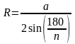 Формула 2. Для радиуса окружности, вписанной в правильный n-угольник.