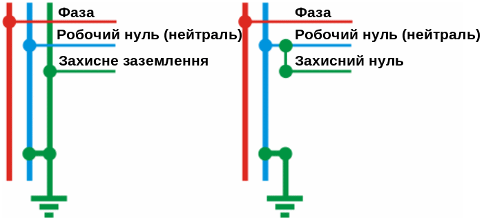 Рис. 1.1. Відмінність|відмінність| захисного заземлення і захисного “нуля”
