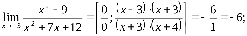 алгебраические преобразования числителя и знаменателя дроби, приводящие к формулам сокращенного умножения; неопределенность устраняется после сокращения дроби;