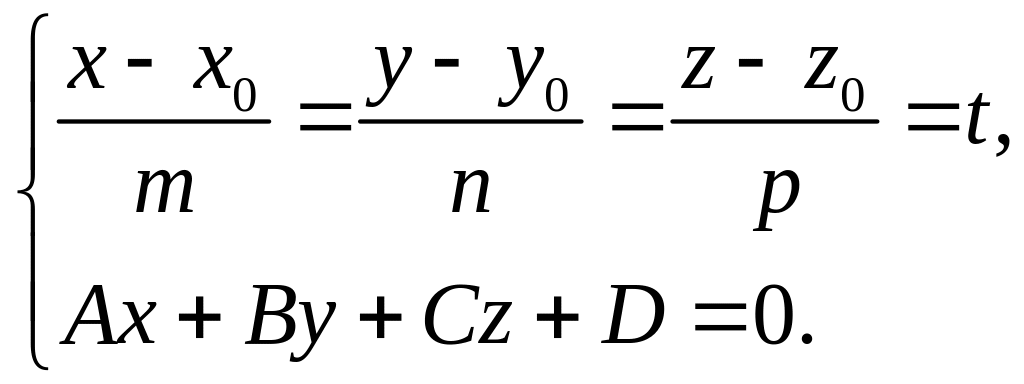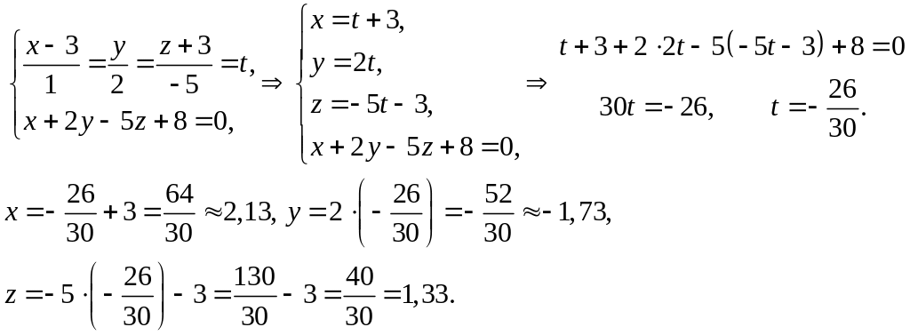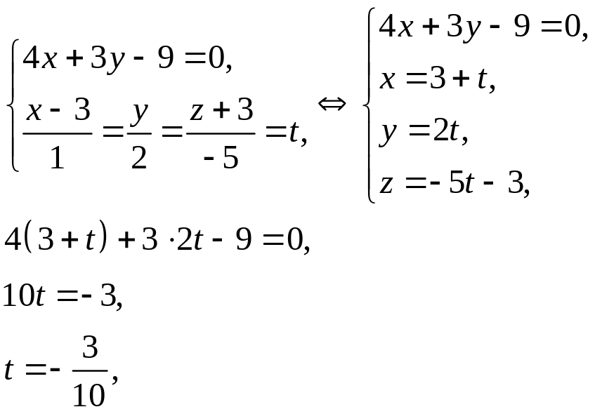 ;уравнение прямой , которая проходит через точку перпендикулярно плоскости ;