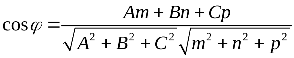В данной формуле первое уравнение – уравнение плоскости ; второе – уравнение плоскости .