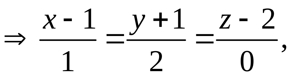 Из параллельности прямых и следует, что направляющий вектор прямой , является так же направляющим вектором прямой . Учитывая, что прямая проходит через точку и пользуясь каноническими уравнениями прямой, можно записать искомые уравнения в виде: