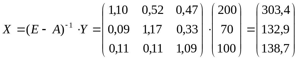 Отже валовий випуск у першій галузі треба збільшити на 103,4 умов. од., у другій – на 32,9 умов. од. і у третій на 38,7 умов. од.