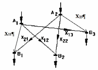 A1=38, A2=33, B1=26, B2=34, B3=39 е.м. z11=1,3; z12=4,8; z13=4,5; z21=1,9; z22=2,3; z23=1,1 у.е./е.м. |