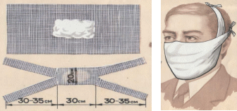 Пов'язка повинна добре закривати ніс і рот, тому верхній її край має бути на рівні очей, а нижній — заходити за підборіддя. Нижні кінці зав'язують на тім'ї, верхні — на потилиці. Для захисту очей необхідно надіти спеціальні окуляри, які щільно прилягають до обличчя.