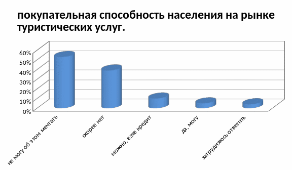 Социологической службой проведен опрос населения с целью выявления уровня его покупательской способности на рынке туристических услуг. Был задан вопрос: «Имеете ли Вы возможность провести семейный отпуск, путешествуя за границей?». Результаты опроса (в % от числа респондентов) представлены в виде гистограммы.