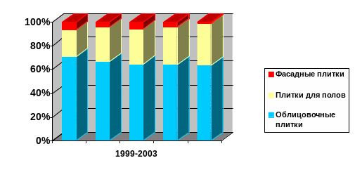 Рис.2 – Структура производства керамических плиток в России: