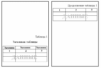 При переносе таблицы головку таблицы следует повторить, и над ней размещают слова «Продолжение таблицы 3.2» или «Окончание табл. 3.2». Если головка таблицы велика, допускается её не повторять, в этом случае следует пронумеровать графы и повторить их нумерацию на следующей странице. Заголовок таблицы не повторяют.